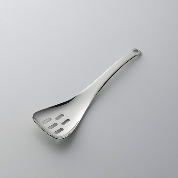 お皿に先端がフィットしてキレイにすくいとれます。穴あきタイプで、具材だけをすくいたい料理におすすめ。