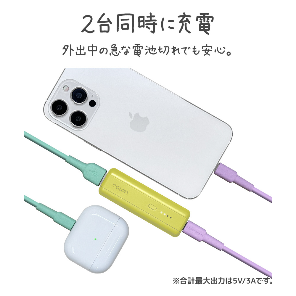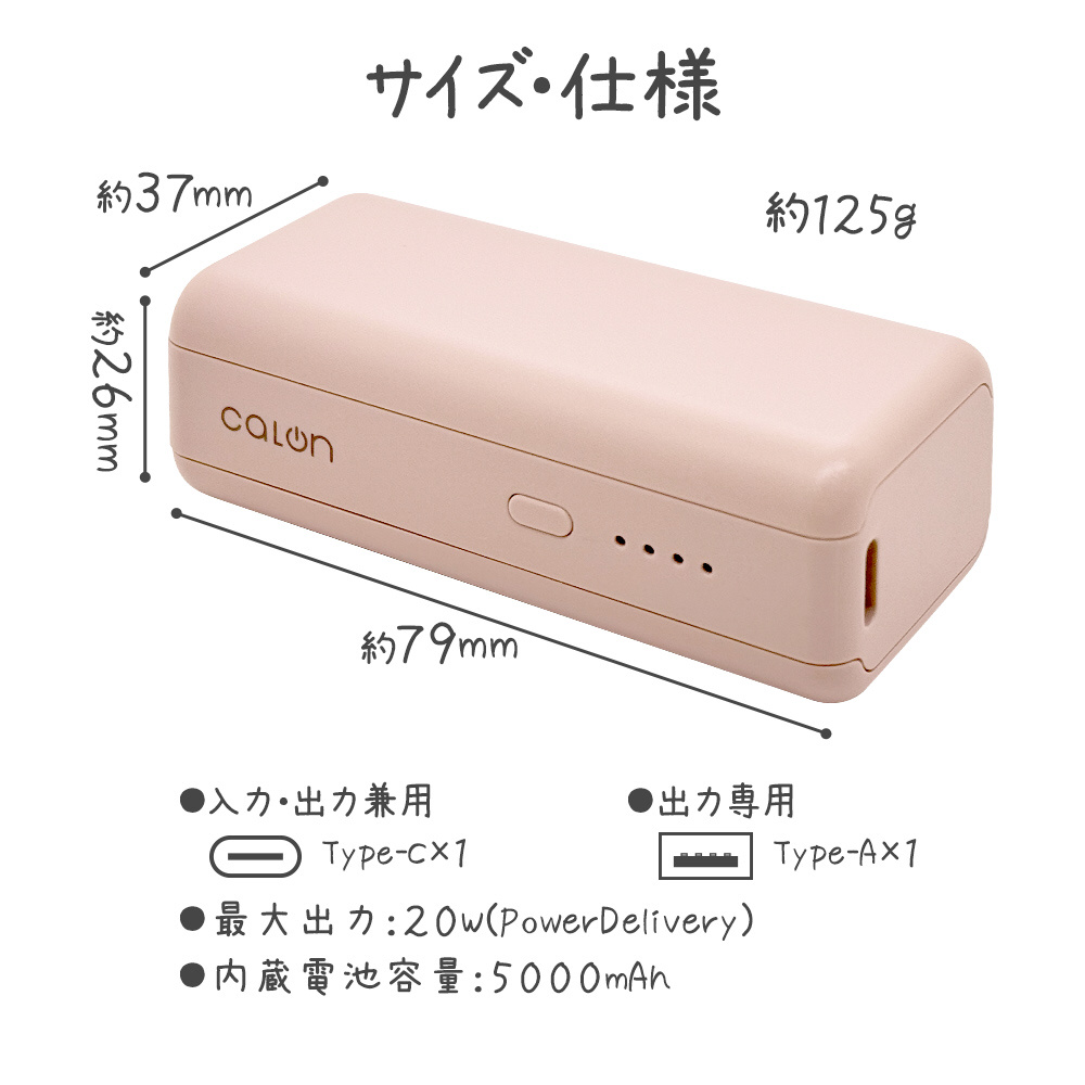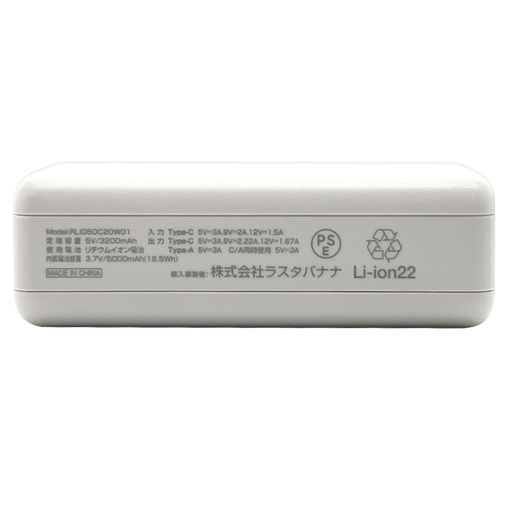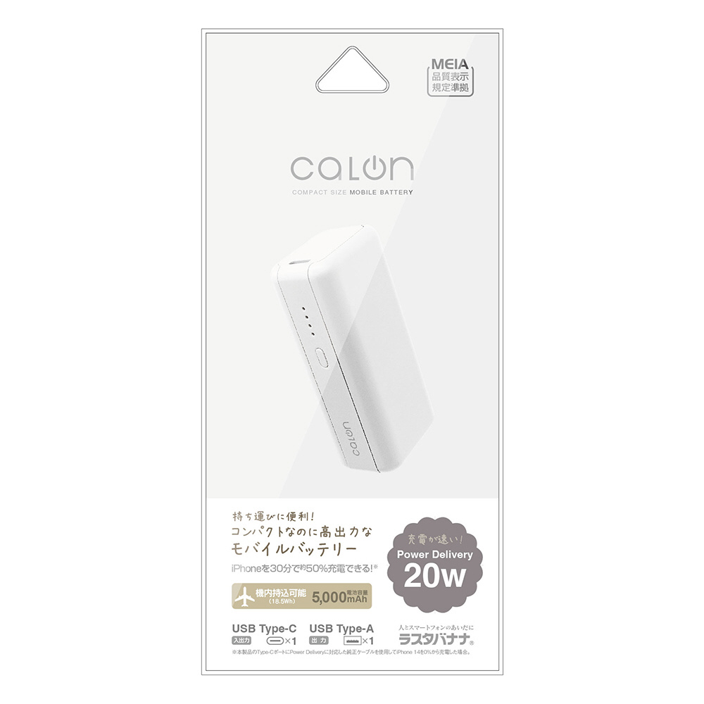 モバイルバッテリー 5000mAh calon ハイパワー USB Type-C Type-A 20W Power Delivery 機内持込 付属ケーブル長: 30cm×1 付属ケーブル:Type-C to C ホワイト RLI050C20W01WH [USB Power Delivery対応 /2ポート]
