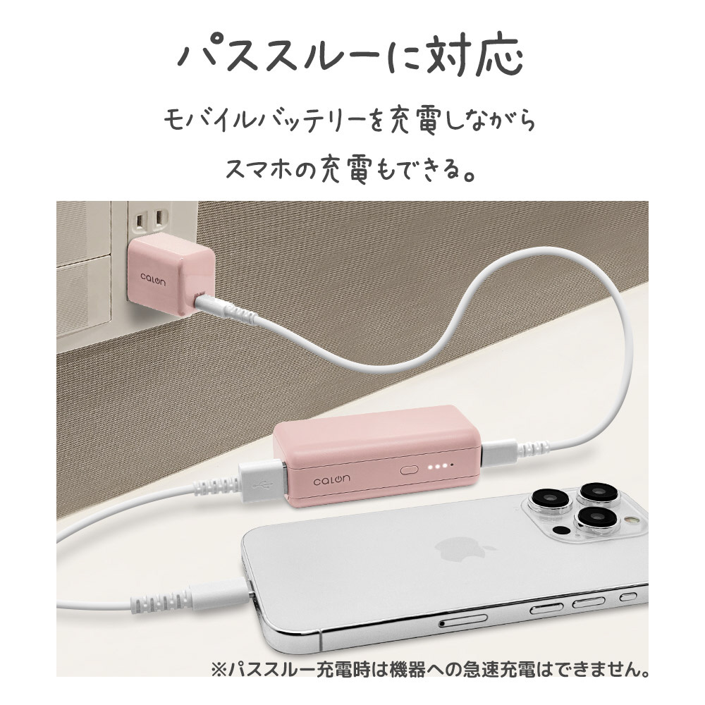 本製品をUSB Type-Cポートから蓄電しながらUSB Type-Aポートからスマートフォン等を充電できるパススルーに対応しています。