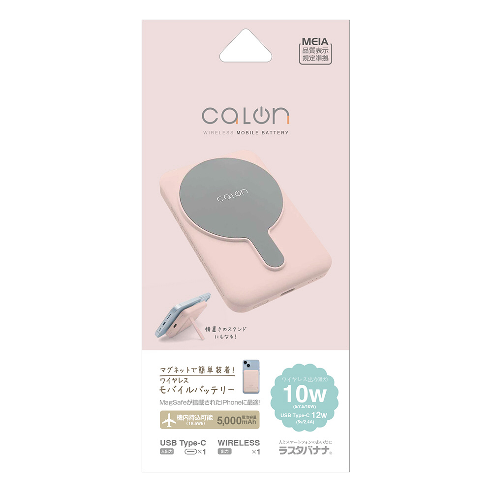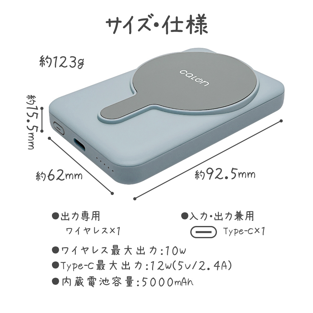 calon 5000mAh マグネット付ワイヤレスモバイルバッテリー WC10W C5V2.4A出力 付属ケーブル:Type-C to C