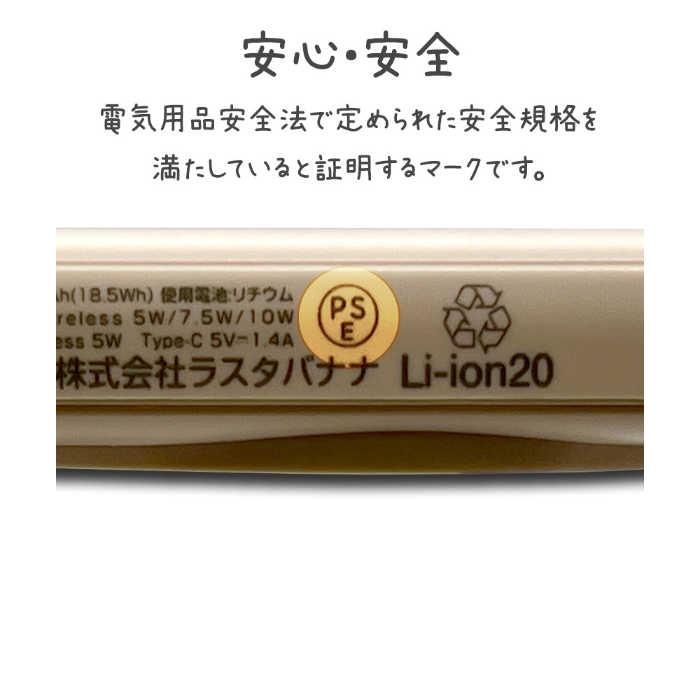ワイヤレス充電機能(送電専用・最大10W)と、Type-Cポート(入力/出力・最大12W)を搭載したモバイルバッテリーです。