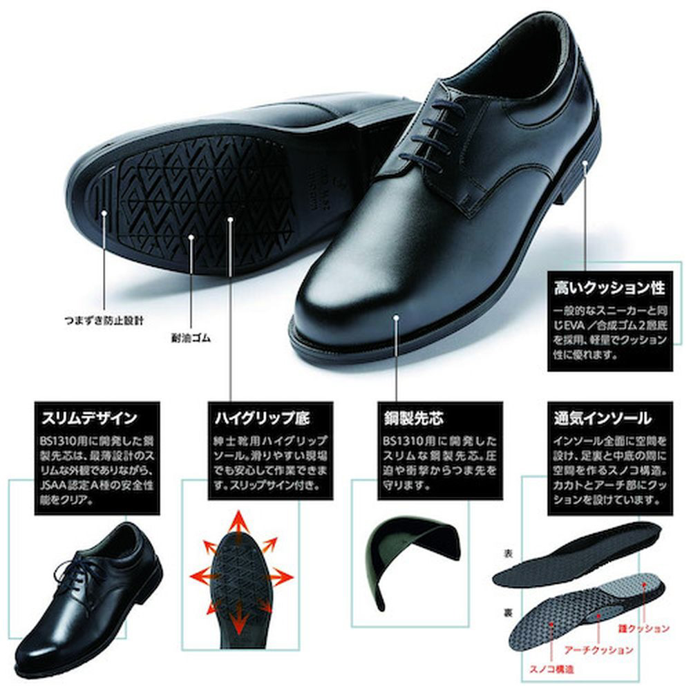 見た目はスマートな紳士靴、中身はJSAA認定A種の安全性能と、二つの顔を持った新しいタイプの靴です。