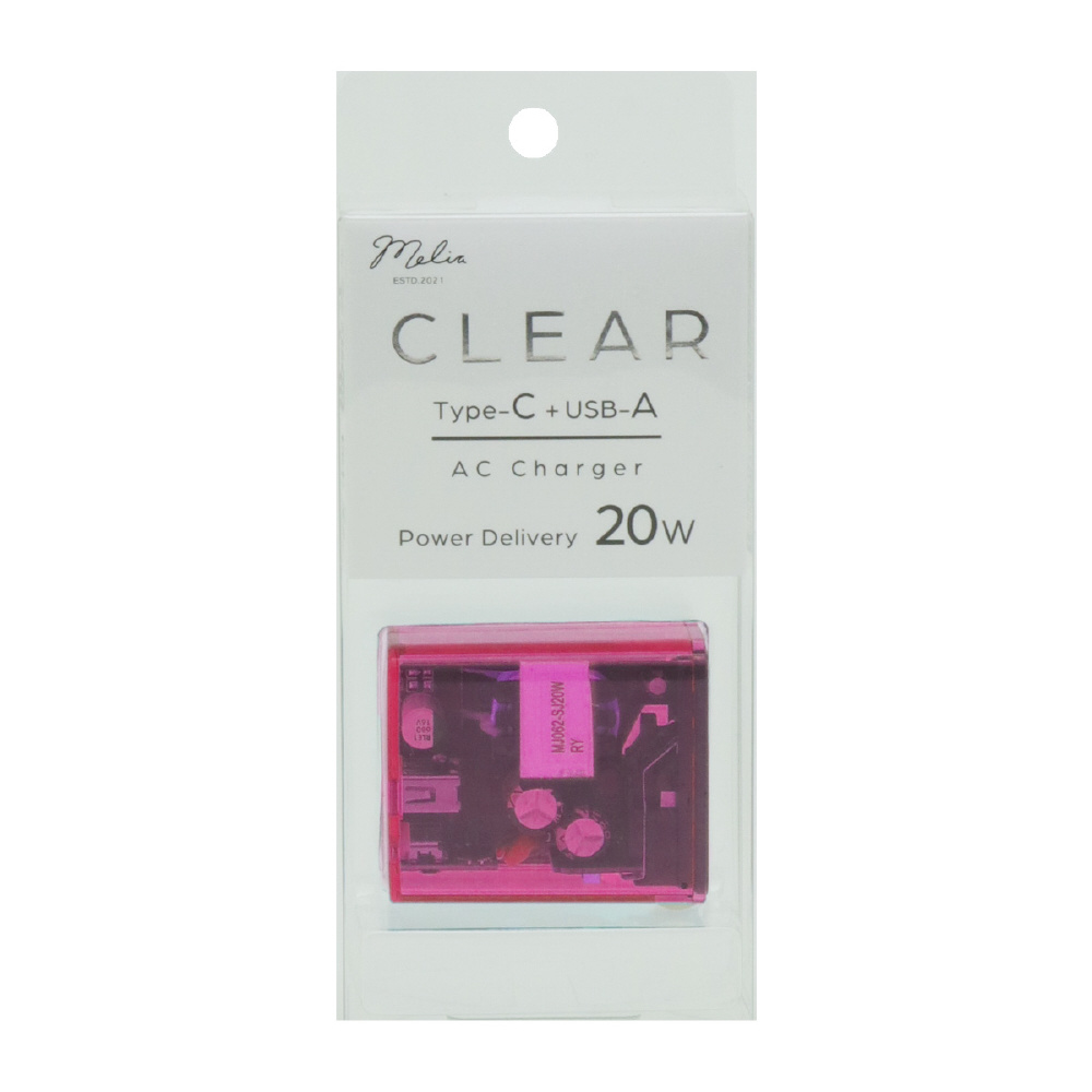 PD対応TypeC/USB-A AC充電器20W クリアピンク IMAC1CU20CLPK [2ポート /USB Power Delivery対応]