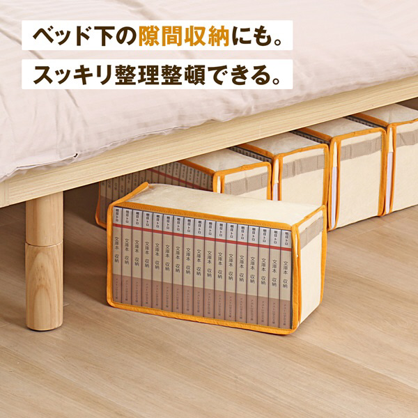 文庫本を通気性の良い不織布でまとめてスッキリ収納。ホコリなどの汚れから守る。