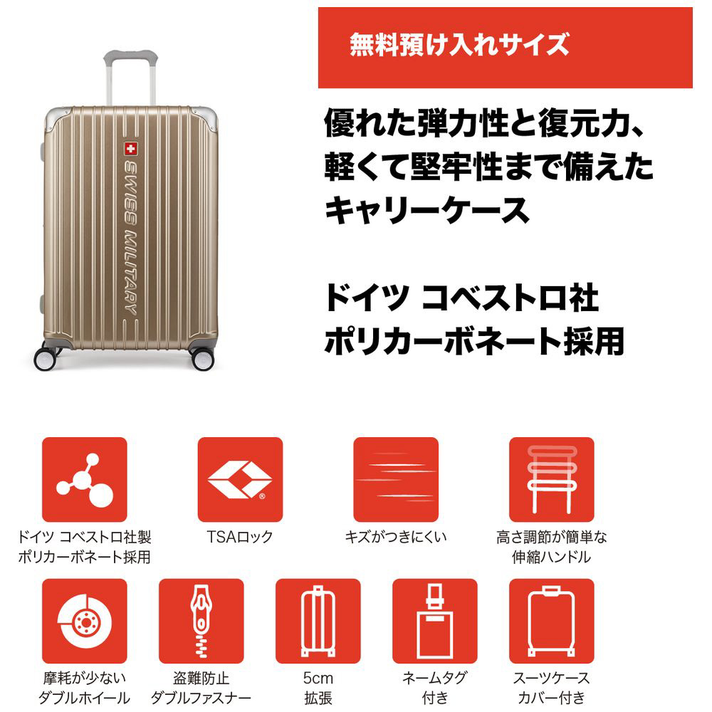 優れた弾力性と復元力、軽くて堅牢性まで備えたキャリーケースです。