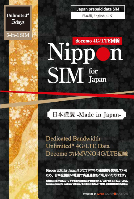 Nippon SIM for Japan無制限版 5日(毎日3GB)/128kbps (full MVNO, auto APN; m-air.jp) DHA-SIM-296 [マルチSIM /SMS非対応]