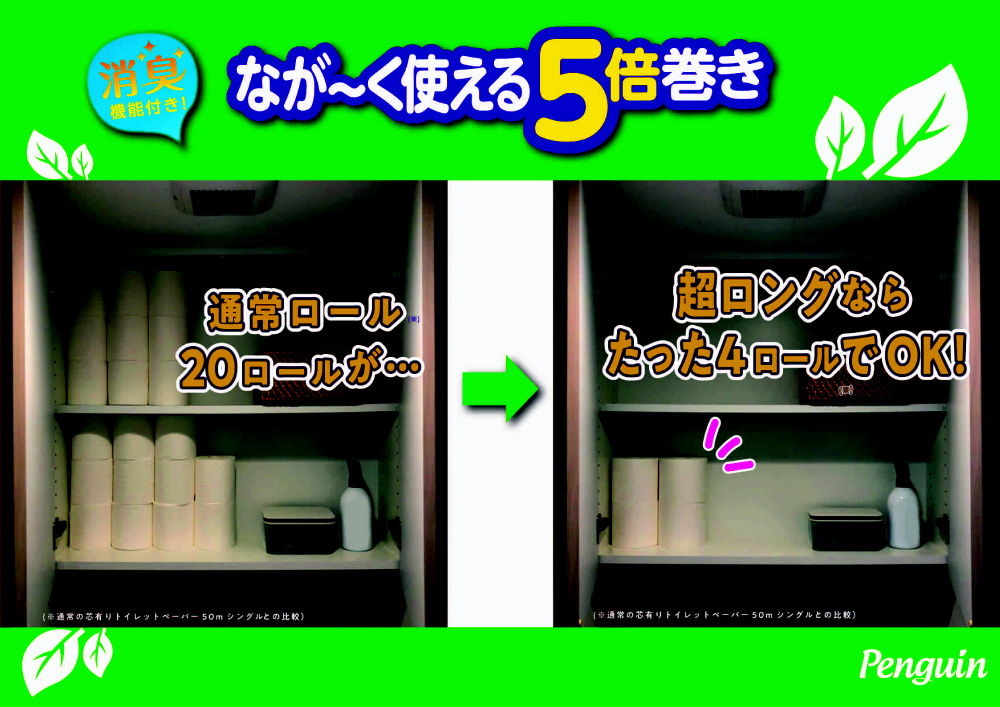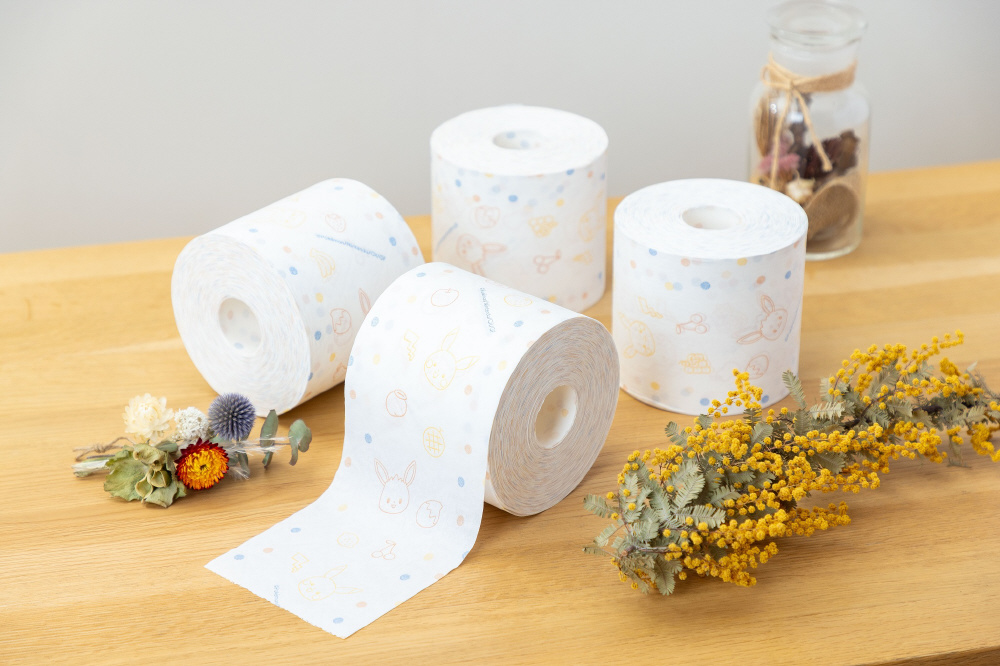 丸富製紙の芯なし長尺シリーズ「超ロング」から、モンポケデザインが新登場!スペースも取らずちょうどいいサイズで、水周りや備蓄にも安心のシュリンクタイプです。かわいいイラストでトイレ空間を華やかに演出します。