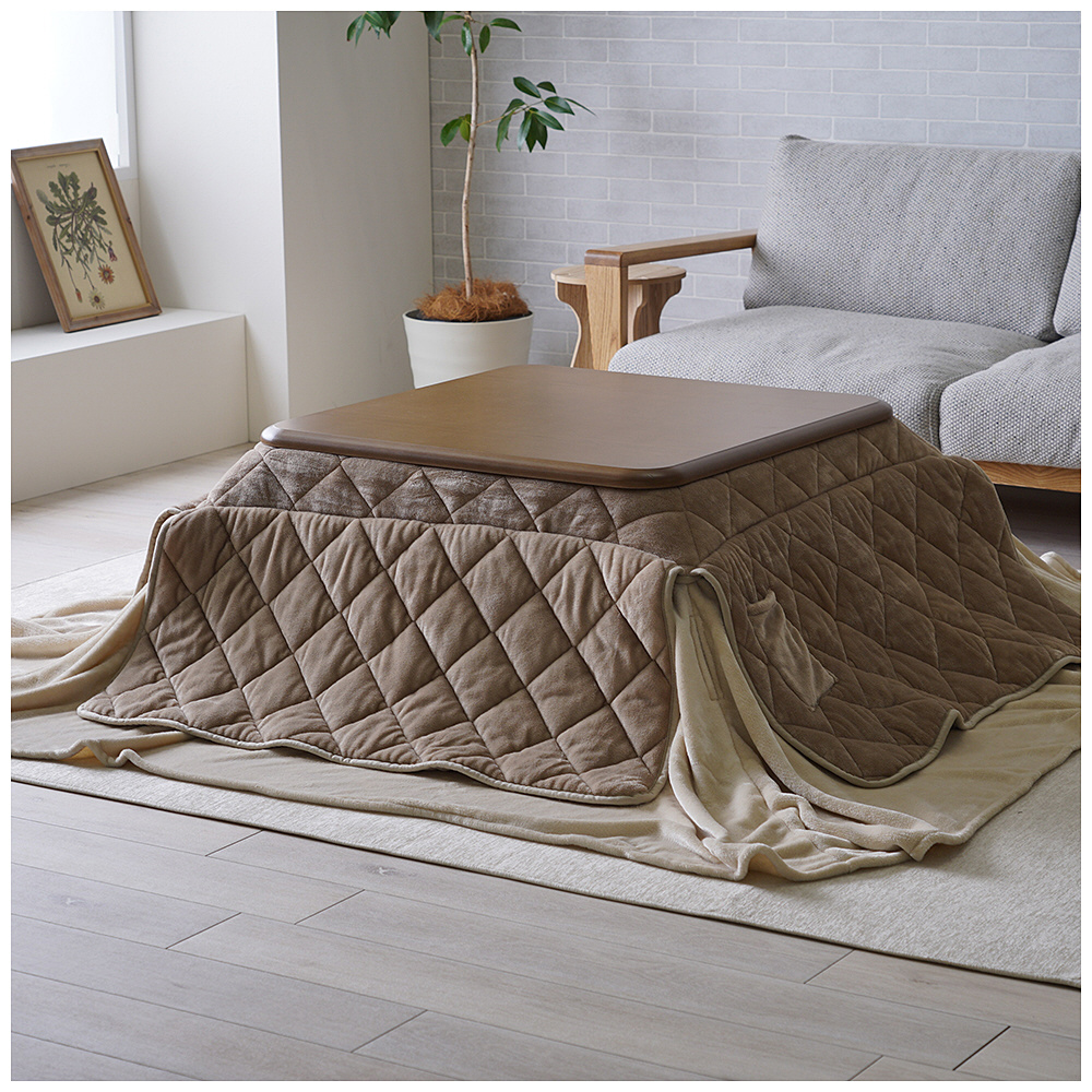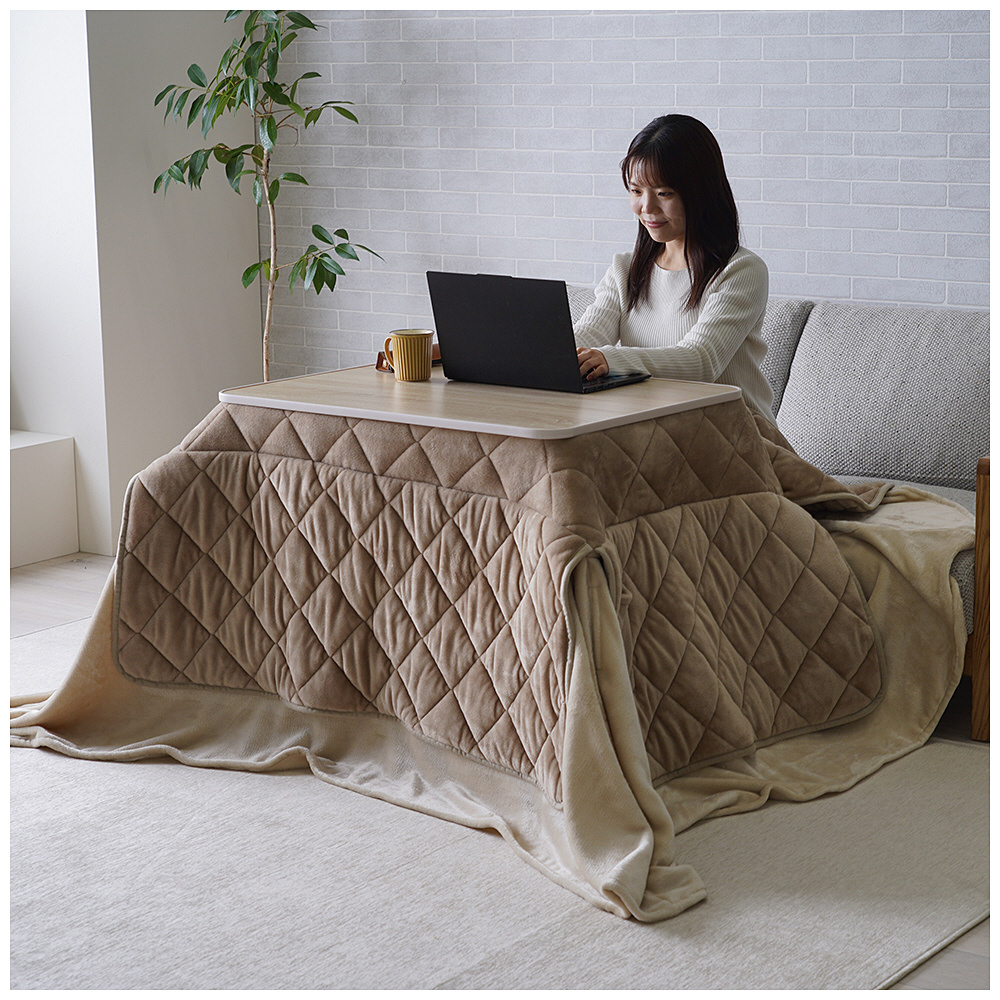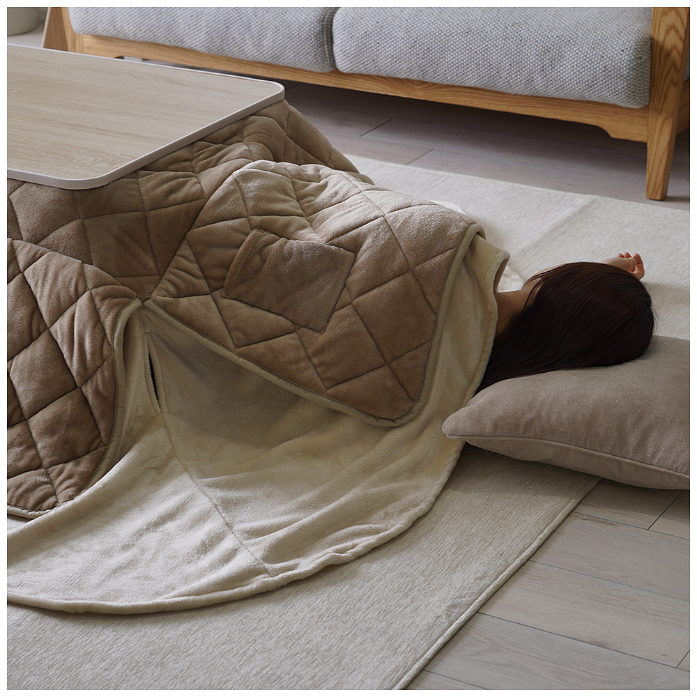 【ハイタイプ・ロータイプ対応】2WAYこたつ布団ミルフィー ベージュ [対応天板サイズ:約75×75cm /正方形]