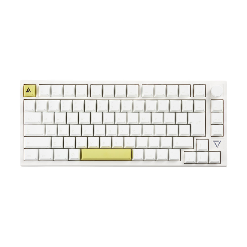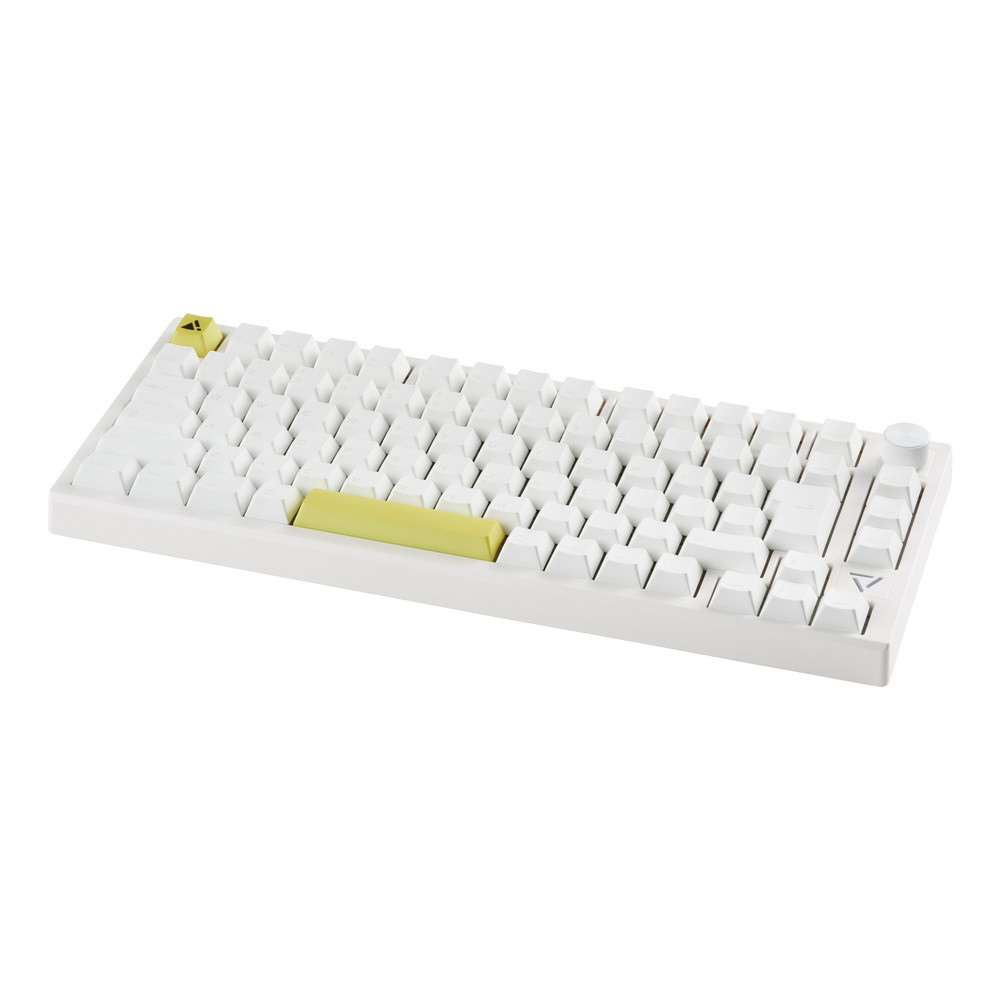 数パターンのライティングが楽しめるRGB LEDライトに、高級感あふれるアルミ削り出しの音量調節用ノブを装備。黄色いESCキーとスペースキーは付属の黒いキーキャップへ変更可能で、部屋の内観に合わせて使用できます。