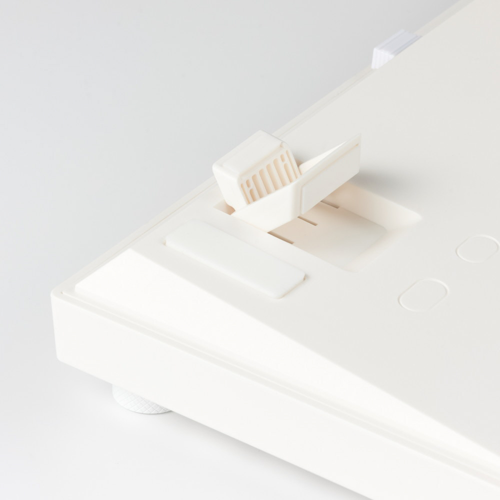 キーボード底面に設置された可変式のスタンドで2段階の高さ調節が可能です。