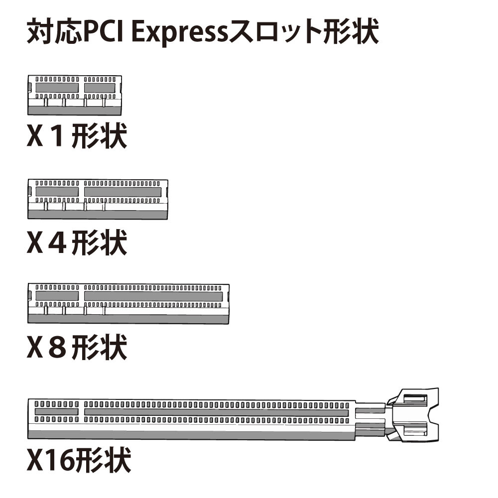 もっとも多くのパソコンが搭載しているPCI Expressx1スロット(Gen2以上の通信を推奨)に接続するように設計されております。またPCI Express X4,X8,X16でも接続頂けます。