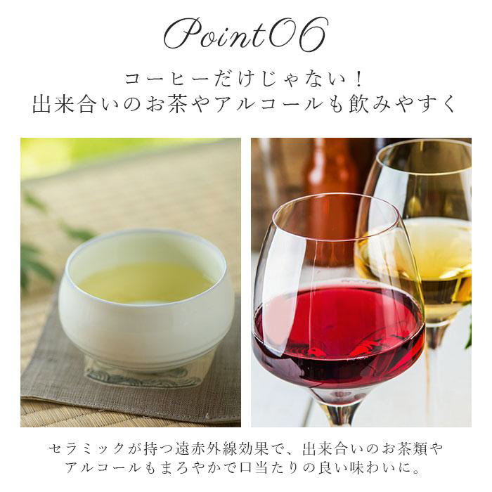 ■またセラミックが持つ遠赤外線効果で、出来合いのお茶類やアルコールもまろやかで口当たりの良い味わいに。