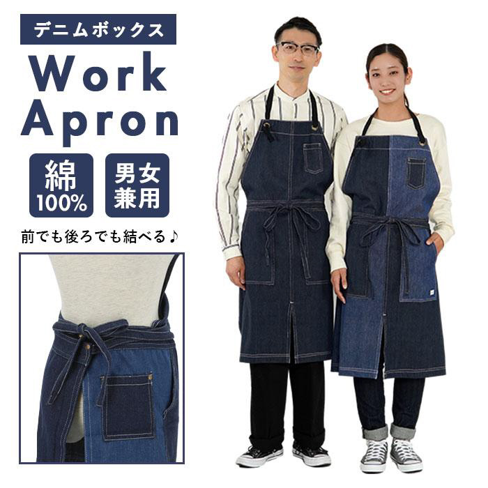 綿100%のデニムワークエプロン。