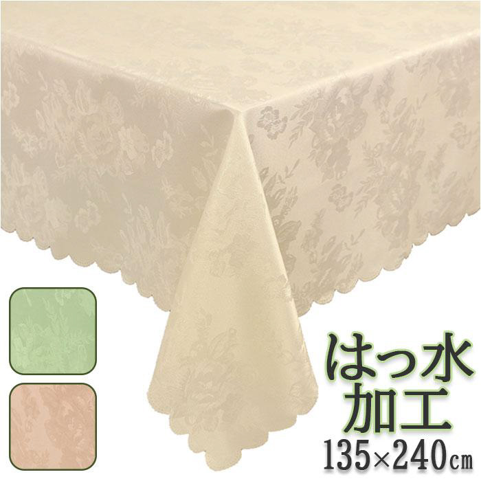 ローズ柄 テーブルクロス 135x240cm ライトグリーン