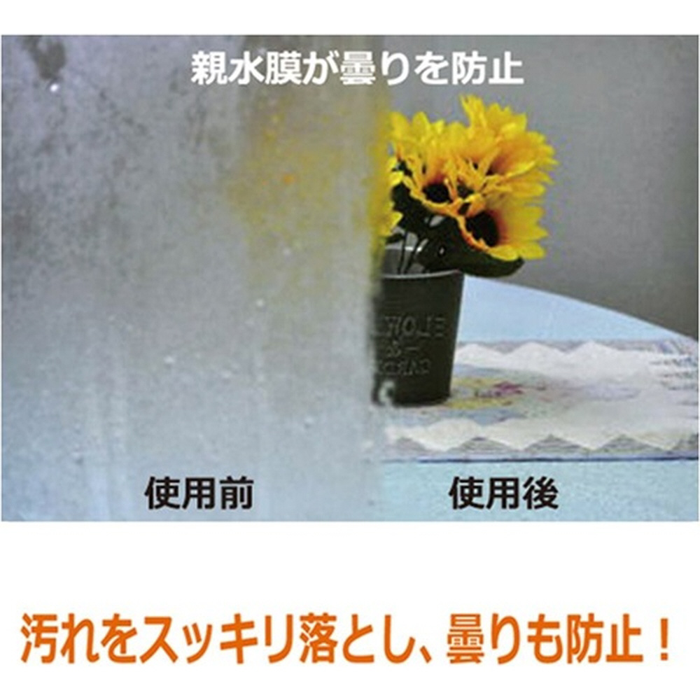 鏡の表面が水のように。洗浄、曇り止め、防汚コーティングが一度にできます。