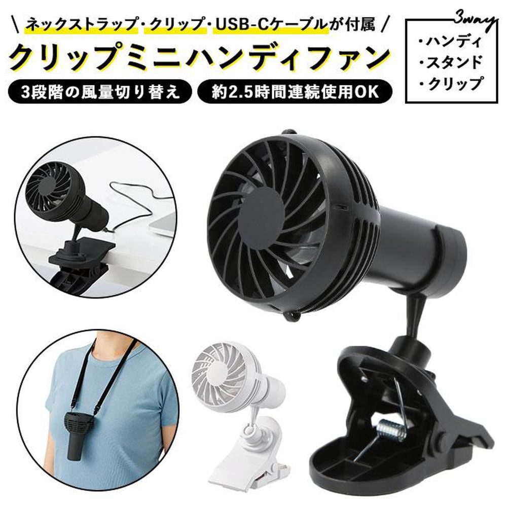 ハンディスタンドクリップの3wayで使える、コンパクトサイズの扇風機「クリップミニハンディファン」が新登場。