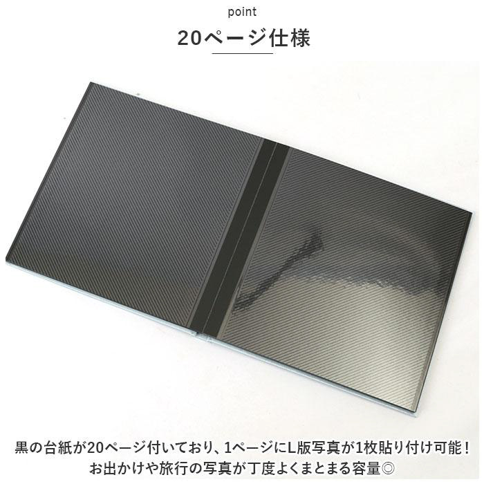■黒の台紙が20ページ付いており、1ページにL版写真が1枚貼り付け可能!