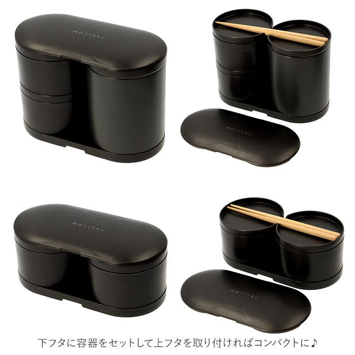 ■各容器のフタに付属のお箸がぴったり収まるスリム設計で、お箸ケースが不要。