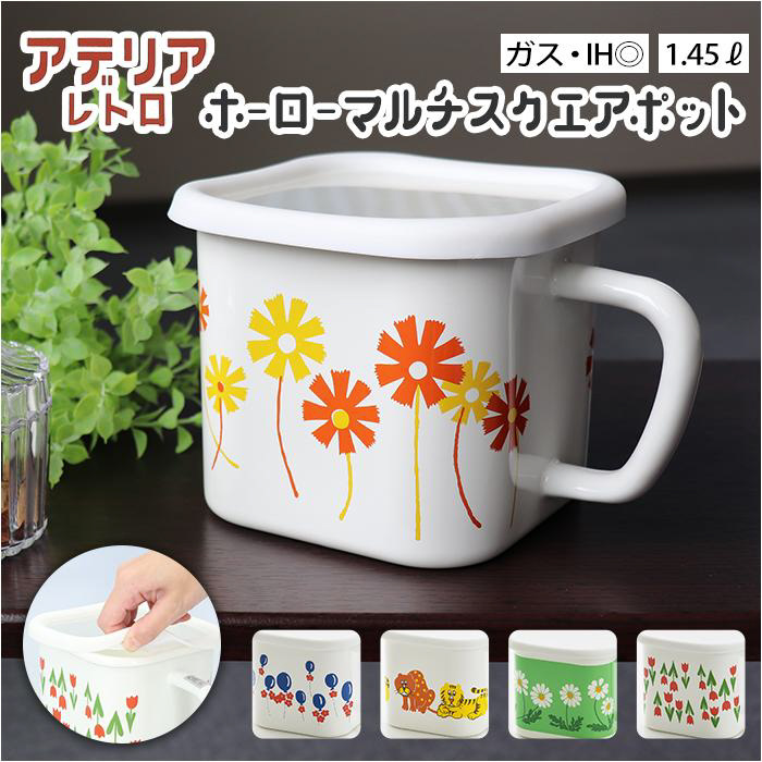 調理も保存も思いのままに♪昭和レトロ感が可愛いアデリアレトロシリーズの「マルチスクエアポット」が新発売!鉄にガラス質の釉薬を高温で焼きつけた「ホーロー(琺瑯)」。