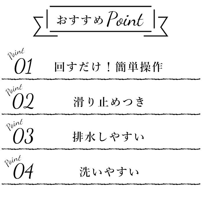 ■また、本体底面部分には滑り止めが付いているので、安定感があり軽い力で水切りができるのも嬉しい。