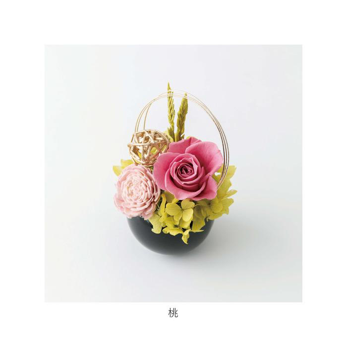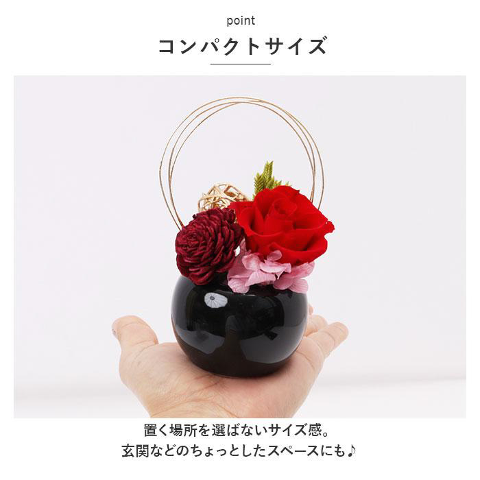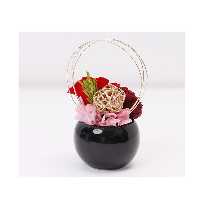 ・素材: [花] プリザーブドフラワー、ドライフラワー [容器] 陶器 [水引き] 和紙