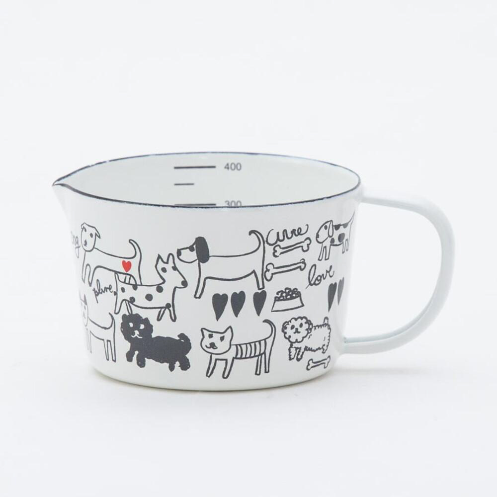 Plune ホーローメジャーカップ ホワイト/モノトーンドッグ