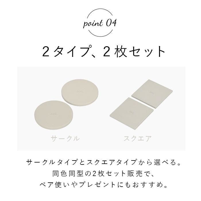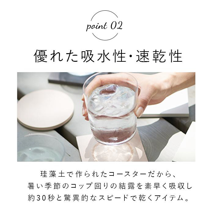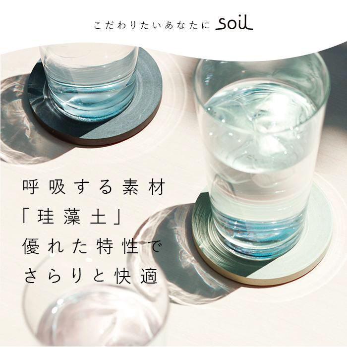■優れた吸水性で、冷たいグラスの表面についた水滴を吸い取り、テーブルを濡らさない、soil(ソイル)コースターサークル&スクエア。