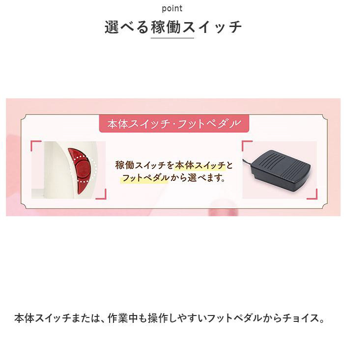 ■本体スイッチまたは、作業中も操作しやすいフットペダルからチョイス。
