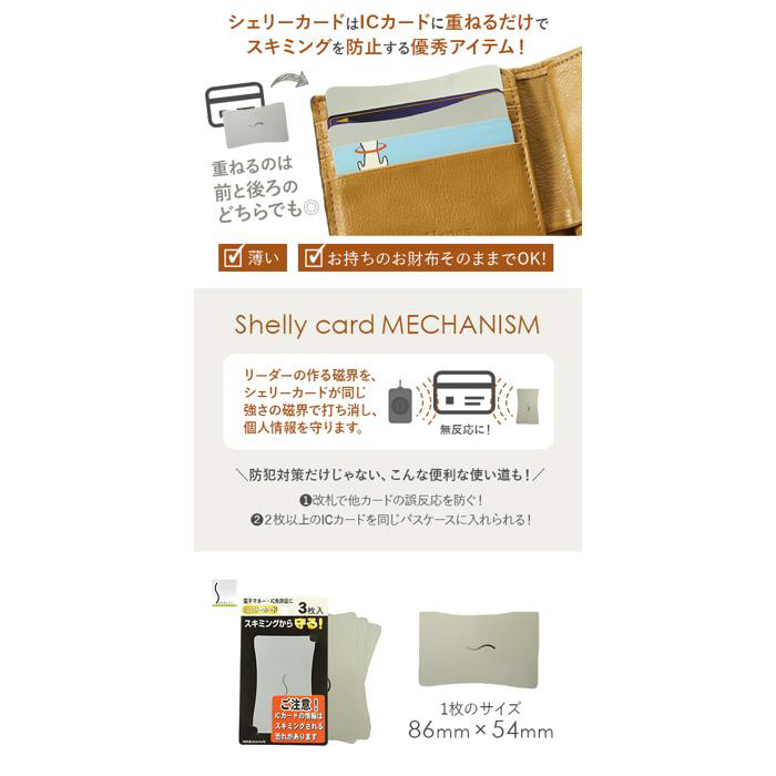 ■非接触式ICカードと重ねて財布や定期入れに収納しておけば、ICカードリーダの発する磁界を無効にし、スキミングをできなくします。