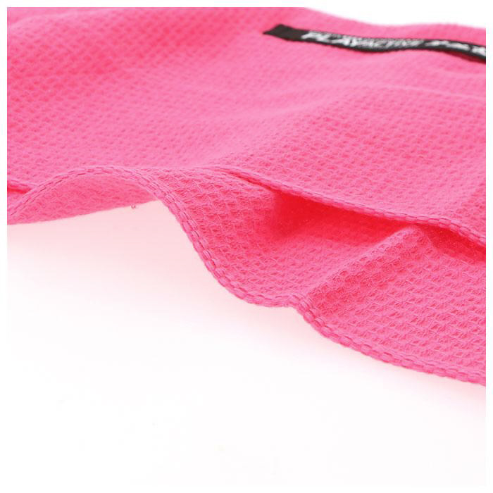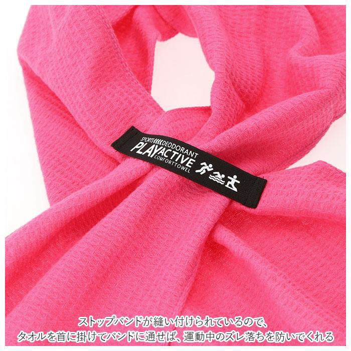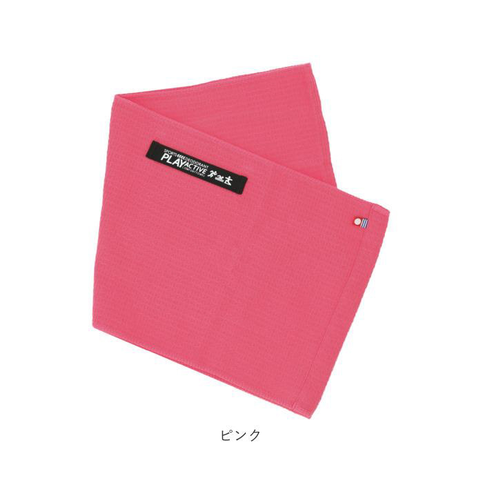 ■ストップバンドが縫い付けられているので、タオルを首に掛けてバンドに通せば、運動中のズレ落ちを防いでくれる。