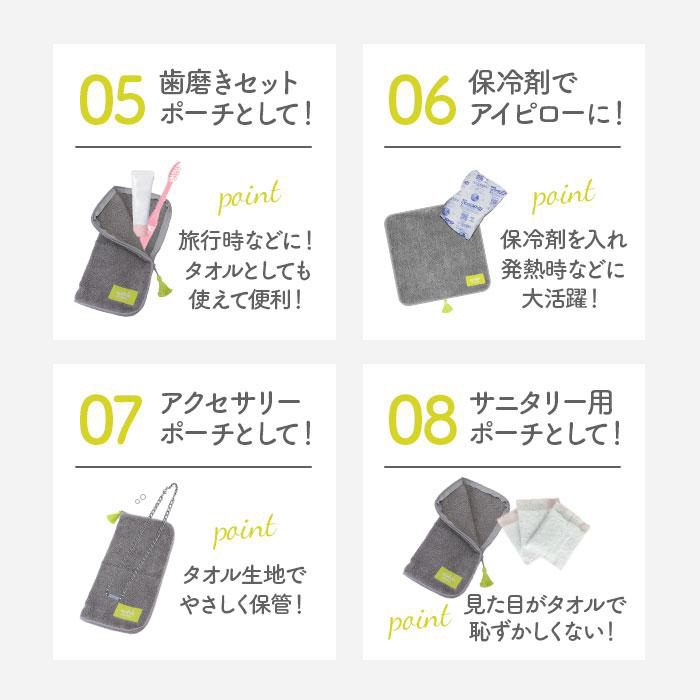 ■どっとポーチは、ミニタオルにファスナーをプラスしたありそうでなかったポーチ。