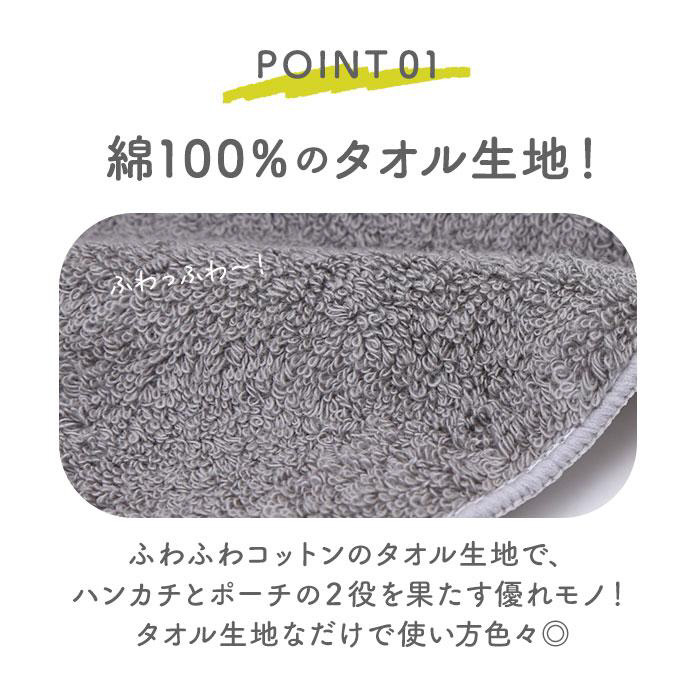 ■パッと見はふわふわコットンのタオルハンカチ、ファスナーを広げると便利なミニポーチに変身!