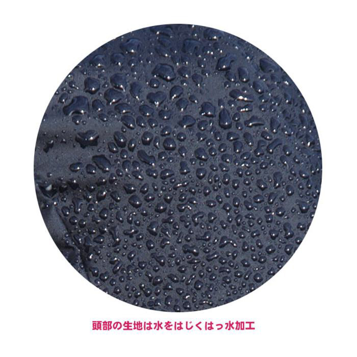 ■生地は撥水加工で雨に強く、ワイドなツバで雨から顔を守ります。