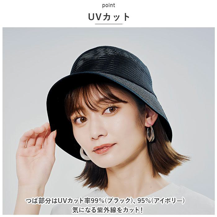 ■つば部分はUVカット率99%(ブラック)、95%(アイボリー)気になる紫外線をカット!