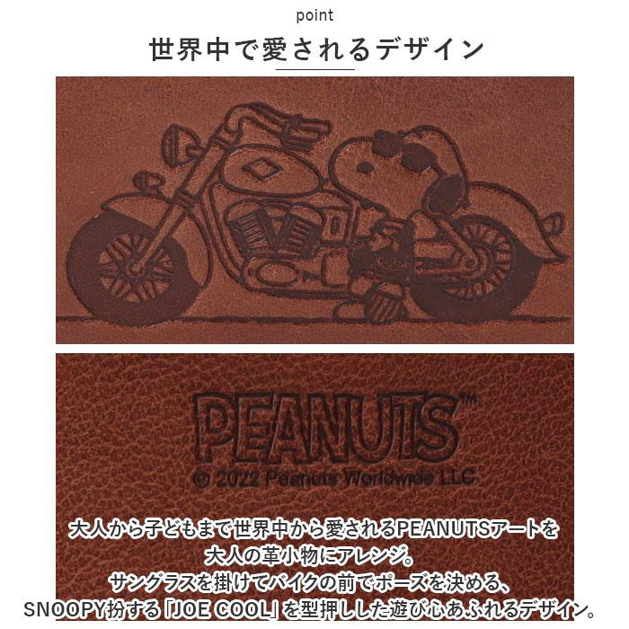 ■サングラスを掛けてバイクの前でポーズを決める、SNOOPY扮する「JOE COOL」を型押しした遊び心あふれるデザイン。