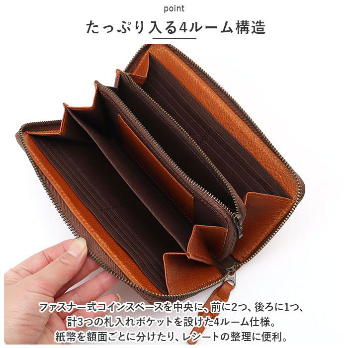 ■上質な天然皮革を贅沢に使用した、可愛くて収納力抜群のロングウォレット。