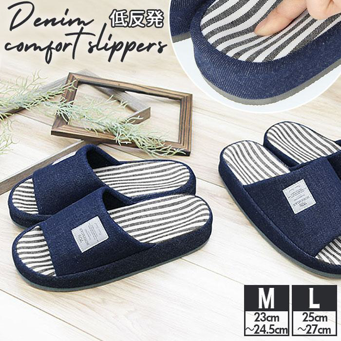 シンプルなスタイルと心地よさを追求した、低反発スリッパ!どんなスタイルにも馴染みやすい、デニム独特の風合いを生かしたデザイン♪