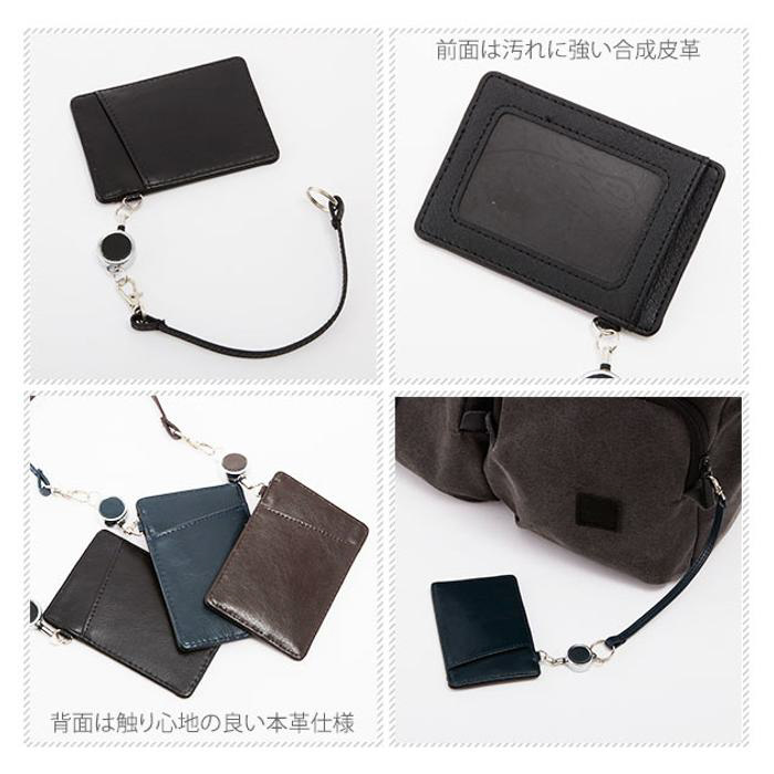 ■前面は汚れに強い合成皮革を使用した、定期やICカードを入れるのにぴったりな窓付きポケット。