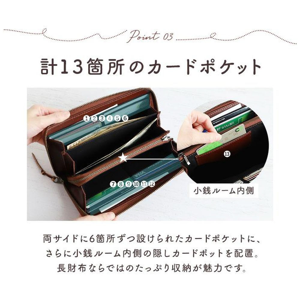 ■札入れポケット×3ファスナー式コインポケット×1カードポケット×13フリーポケット×2