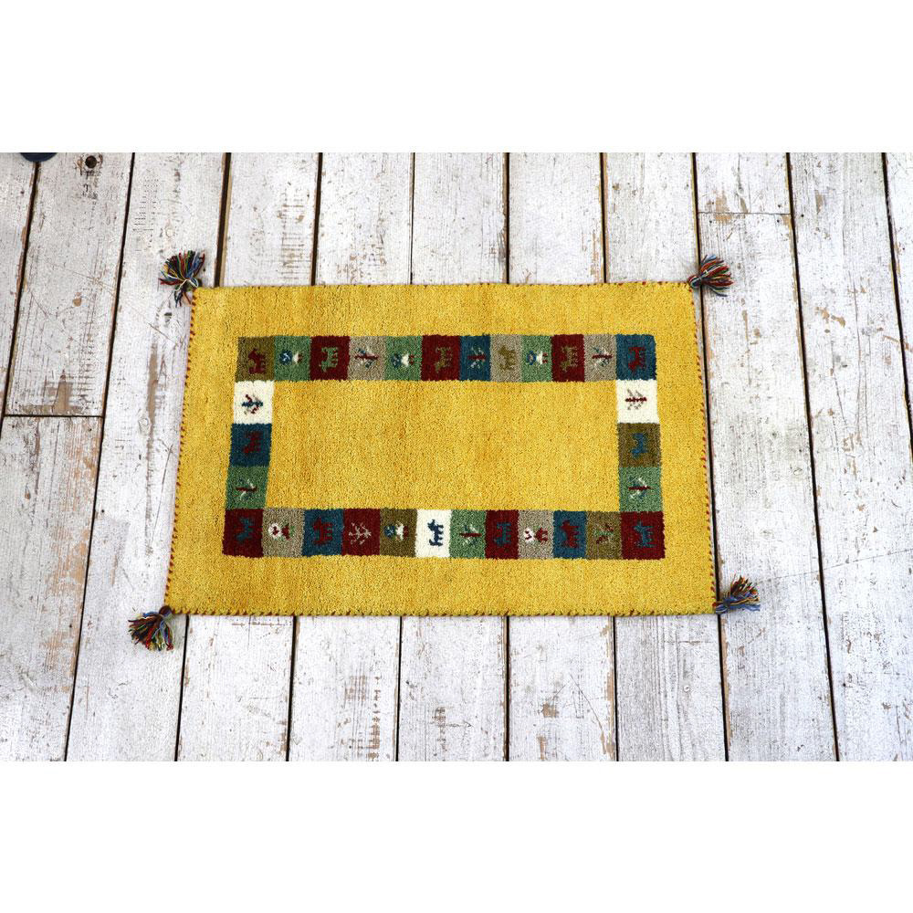 DICTUM ディクトム ハンドノット 手織りギャッベ 60x90 マット GH908.イエロー