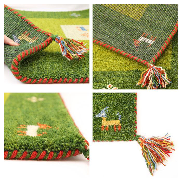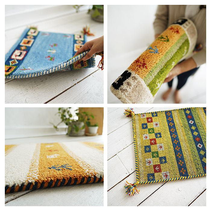 ■糸を1本ずつ手で結ぶハンドノットという織り方で時間と手間をかけて作り上げられたギャッベはすべて一点もの。