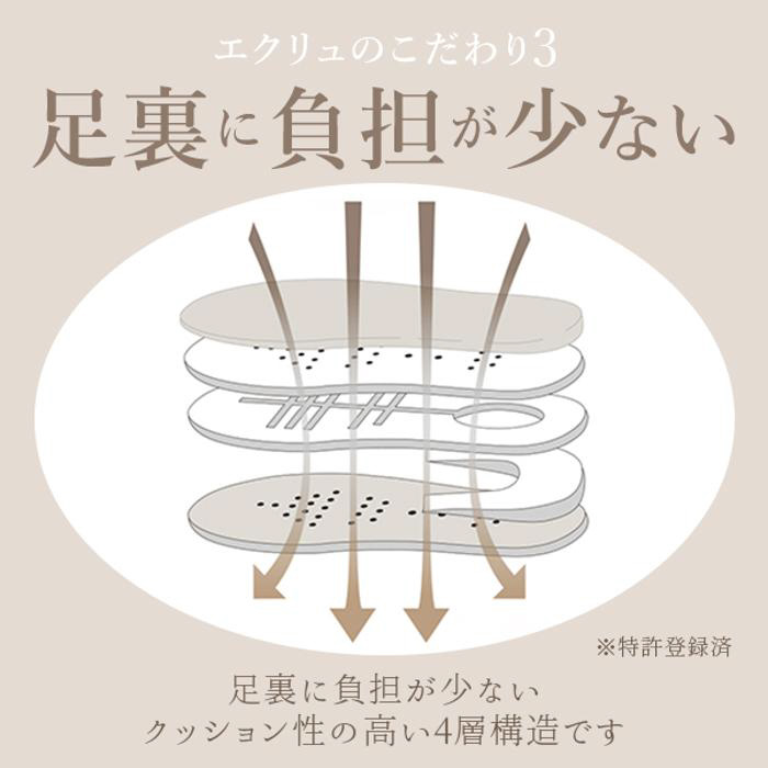 ■足裏が触れる部分が絨毯素材になっており肌触りがよく、歩くとで下から空気が抜けることで通気性を確保。