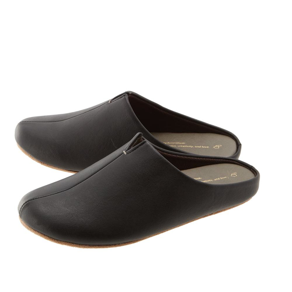 フェイクレザーで高級感のあるおしゃれなデザインと、履き心地も考えられたルームシューズでお客様を「足元からおもてなし」。