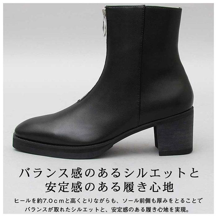 glabella Front Zip Heel Boots Mサイズ(26.0-26.5cm) BLACK