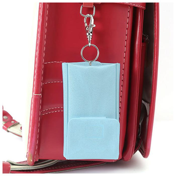 ■ランドセルの肩ベルトに本体を巻きつける様に留め、フックをランドセルのDカンに装着するから落ちにくい!