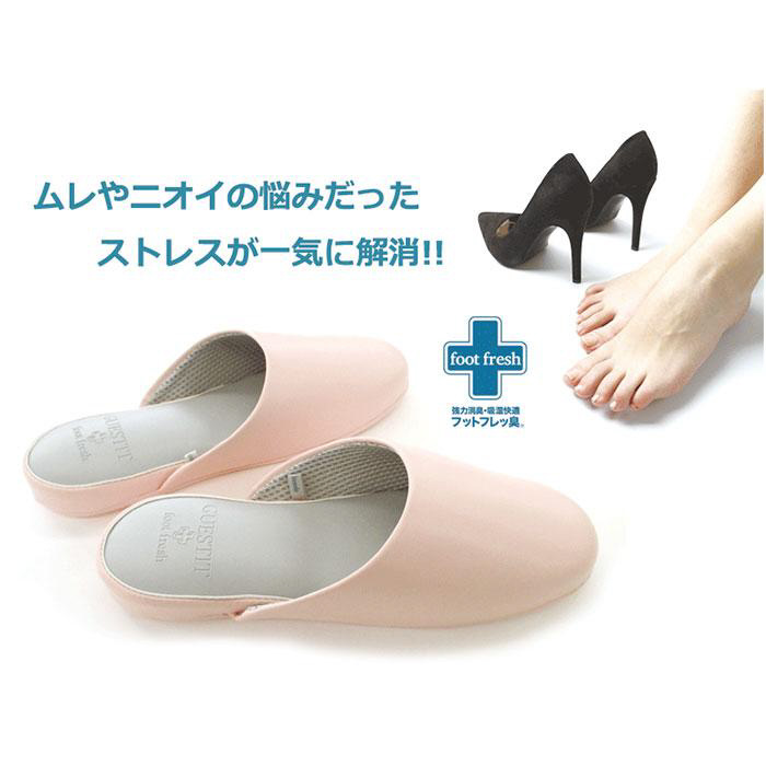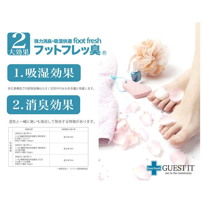 ■つま先や足裏のムレを除去する吸湿効果に加え、足の臭いの成分であるイソ吉草酸ガスを除去することによる消臭効果が期待できるため、素足で履いても快適。