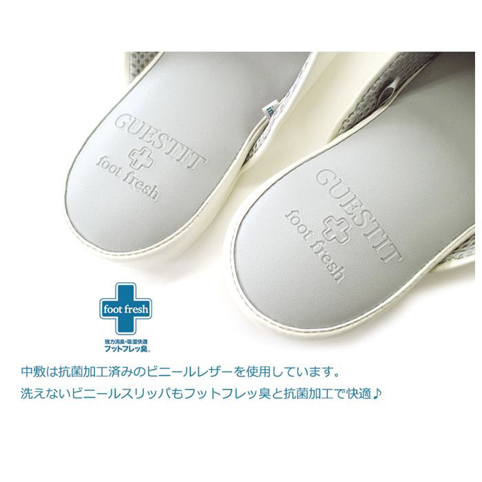 ■中敷きは抗菌加工済みのビニールレザーを使用、洗えないビニールスリッパもフットフレッ臭と抗菌加工で快適♪