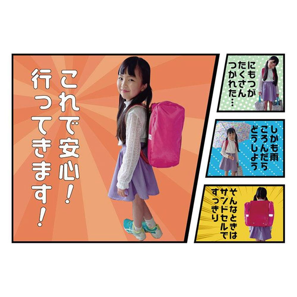 通学時の荷物をスッキリ収納できる!ママのアイデアから生まれたランドセル用補助バッグ「サンドセル」。