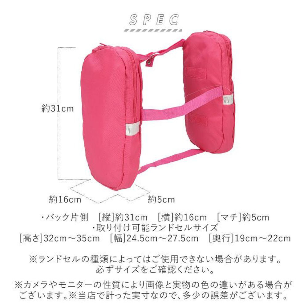 ・サイズ: ・バック片側 [縦] 約31cm/ [横] 約16cm/ [マチ] 約5cm・取り付け可能ランドセルサイズ [高さ] 32cm〜35cm/ [幅] 24.5cm〜27.5cm