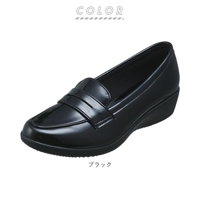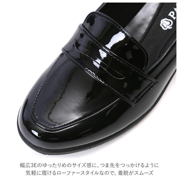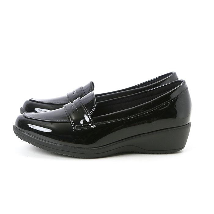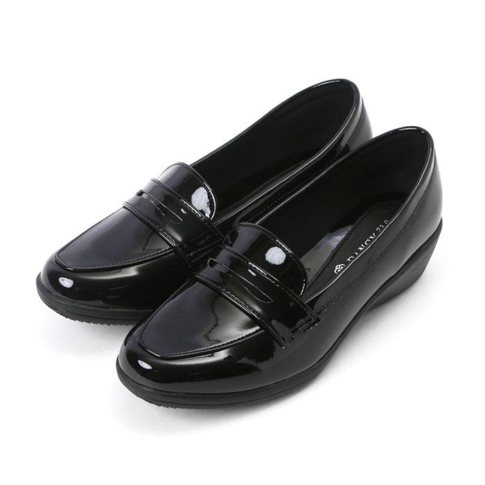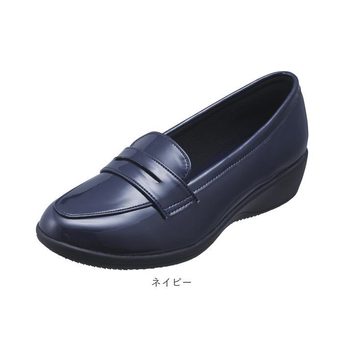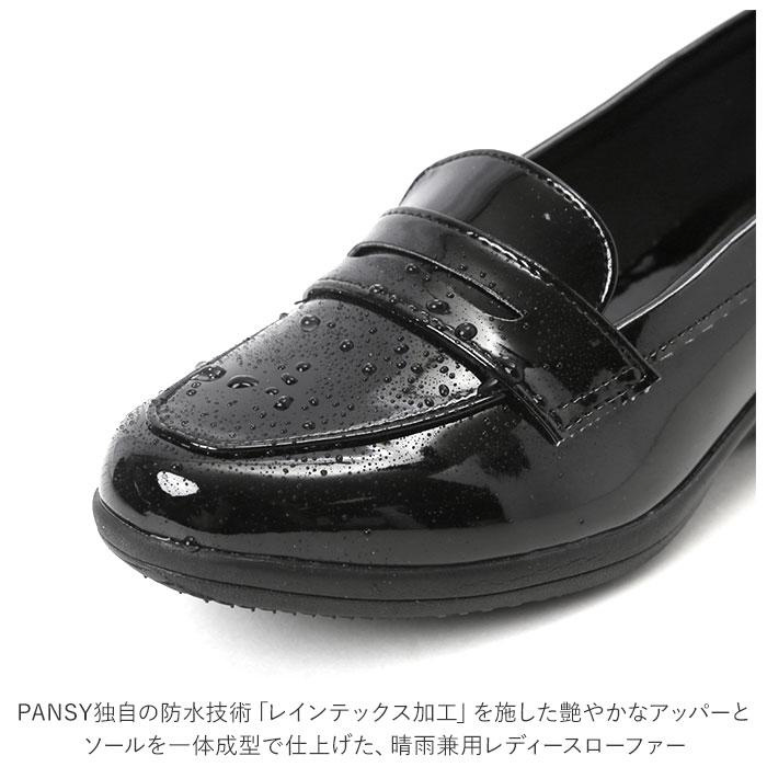 ■PANSY独自の防水技術「レインテックス加工」を施した艶やかなアッパーと、ソールを一体成型で仕上げた、晴雨兼用レディースローファー。
